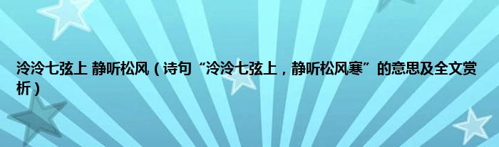 大家好,小常来为大家解答以上问题。泠泠七弦上 静听松风,诗句“泠泠七弦上,静听松风寒”的意思及全文赏析很多人还不知道,现在让我们一起来看看吧!