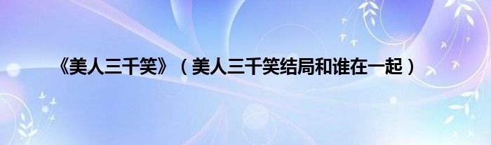 大家好,小常来为大家解答以上问题。《美人三千笑》,美人三千笑结局和谁在一起很多人还不知道,现在让我们一起来看看吧!