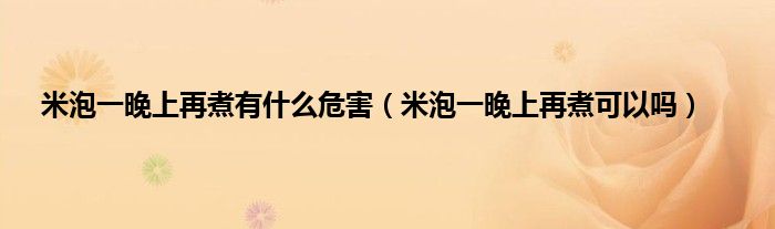 大家好,小科来为大家解答以上问题。米泡一晚上再煮有什么危害,米泡一晚上再煮可以吗很多人还不知道,现在让我们一起来看看吧!