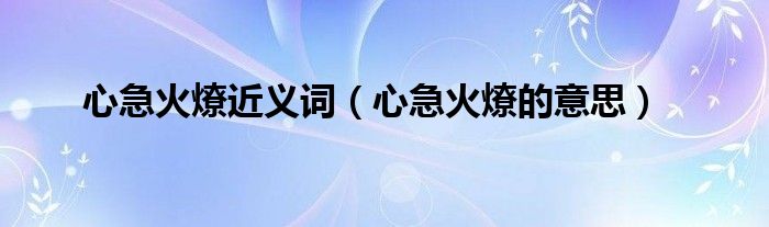 大家好,小常来为大家解答以上问题。心急火燎近义词,心急火燎的意思很多人还不知道,现在让我们一起来看看吧!