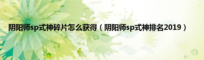 大家好,小常来为大家解答以上问题。阴阳师sp式神碎片怎么获得,阴阳师sp式神排名2019很多人还不知道,现在让我们一起来看看吧!
