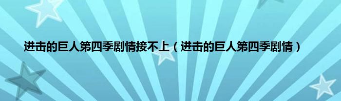 大家好,小常来为大家解答以上问题。进击的巨人第四季剧情接不上,进击的巨人第四季剧情很多人还不知道,现在让我们一起来看看吧!