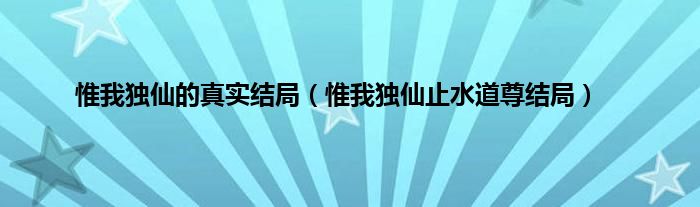 惟我独仙的真实结局(惟我独仙止水道尊结局)