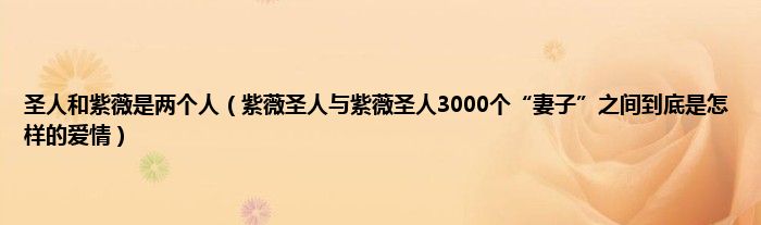 大家好,小常来为大家解答以上问题。圣人和紫薇是两个人,紫薇圣人与紫薇圣人3000个“妻子”之间到底是怎样的爱情很多人还不知道,现在让我们一起来看看吧!