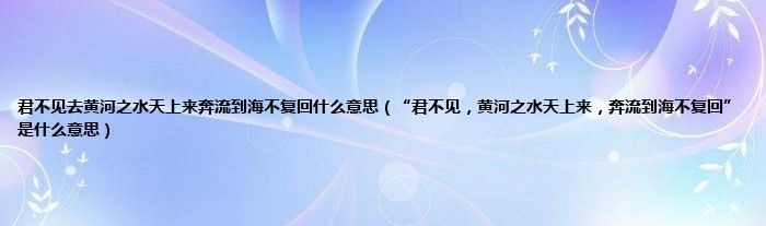 “君不见,黄河之水天上来,奔流到海不复回”意思是:你没看见吗?黄河之水是由天上而来。波涛滚滚奔向东海,永不回头。李白的《将进酒》道出了黄河一泻万里的冲天气势和辉映日月的生命豪情。特别是它是奔流到海的历程,遭遇了多少坎坷,多少阻遏!润泽了多少土地,多少生命!选自【唐】李白《将进酒》:君不见,黄河之水天上来,奔流到海不复回。君不见,高堂明镜悲白发,朝如青丝暮成雪。人生得意须尽欢,莫使金樽空对月。天生我材必有用,千金散尽还复来。烹羊宰牛且为乐,会须一饮三百杯。岑夫子,丹丘生,将进酒,君莫停。与君歌一曲,请君为我侧耳听。钟鼓馔玉不足贵,但愿长醉不愿醒。古来圣贤皆寂寞,惟有饮者留其名。陈王昔时宴平乐,斗酒十千恣欢谑。主人何为言少钱,径须沽取对君酌。五花马,千金裘,呼儿将出换美酒,与尔同销万古愁。李白(701年-762年),字太白,号青莲居士,又号“谪仙人”,是唐代伟大的浪漫主义诗人,被后人誉为“诗仙”,与杜甫并称为“李杜”,为了与另两位诗人李商隐与杜牧即“小李杜”区别,杜甫与李白又合称“大李杜”。其人爽朗大方,爱饮酒作诗,喜交友。