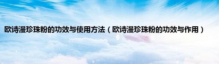 大家好,小科来为大家解答以上问题。欧诗漫珍珠粉的功效与使用方法,欧诗漫珍珠粉的功效与作用很多人还不知道,现在让我们一起来看看吧!