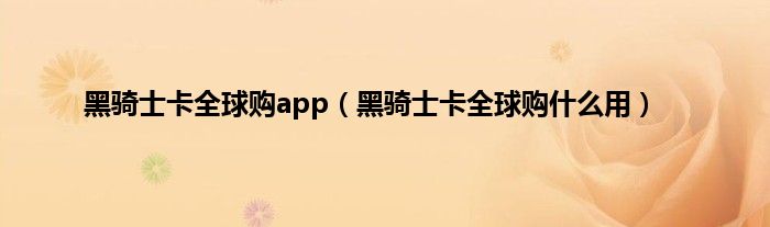 大家好,小常来为大家解答以上问题。黑骑士卡全球购app,黑骑士卡全球购什么用很多人还不知道,现在让我们一起来看看吧!
