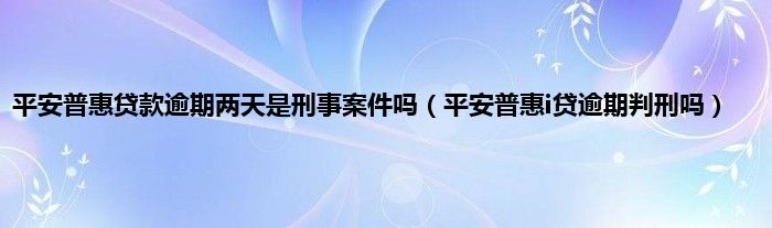 大家好,小常来为大家解答以上问题。平安普惠贷款逾期两天是刑事案件吗,平安普惠i贷逾期判刑吗很多人还不知道,现在让我们一起来看看吧!