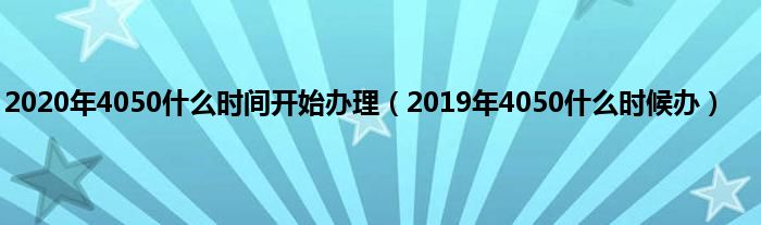 大家好,小常来为大家解答以上问题。2020年4050什么时间开始办理,2019年4050什么时候办很多人还不知道,现在让我们一起来看看吧!