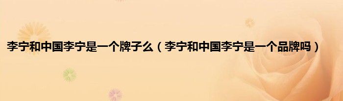大家好,小科来为大家解答以上问题。李宁和中国李宁是一个牌子么,李宁和中国李宁是一个品牌吗很多人还不知道,现在让我们一起来看看吧!