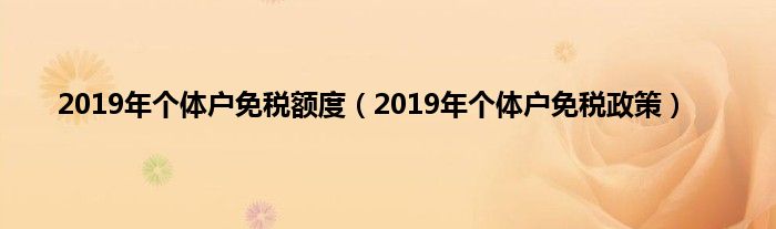 大家好,小常来为大家解答以上问题。2019年个体户免税额度,2019年个体户免税政策很多人还不知道,现在让我们一起来看看吧!