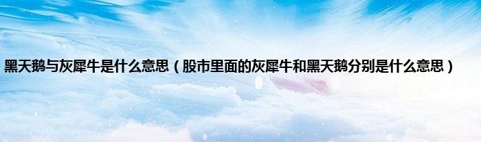 2、现在不少人进入到股票市场,在2018年经常出现的一个热词就是“黑天鹅”,2018年也被股票投资者成为黑天鹅年,这是一个不好的新号,股价会一天天下跌,另外在股市中还有一种现象“灰犀牛”,了解这些股市中的专业术语是认知股票的重要步骤,了解后才能更好的炒股,了解到股市中的风险,那么,股市里出现的灰犀牛和黑天鹅到底是什么意思呢?
