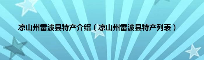 大家好,小常来为大家解答以上问题。凉山州雷波县特产介绍,凉山州雷波县特产列表很多人还不知道,现在让我们一起来看看吧!