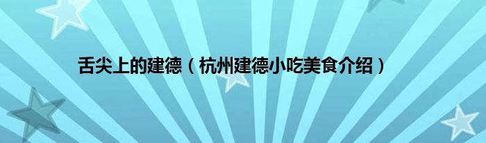 大家好,小常来为大家解答以上问题。舌尖上的建德,杭州建德小吃美食介绍很多人还不知道,现在让我们一起来看看吧!