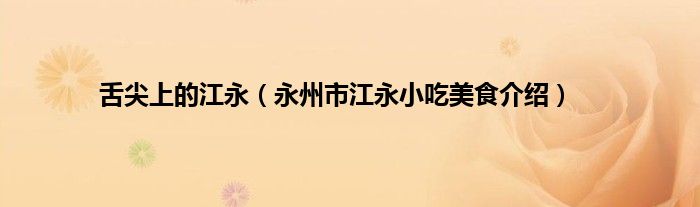 大家好,小常来为大家解答以上问题。舌尖上的江永,永州市江永小吃美食介绍很多人还不知道,现在让我们一起来看看吧!