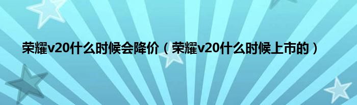 大家好,小常来为大家解答以上问题。荣耀v20什么时候会降价,荣耀v20什么时候上市的很多人还不知道,现在让我们一起来看看吧!