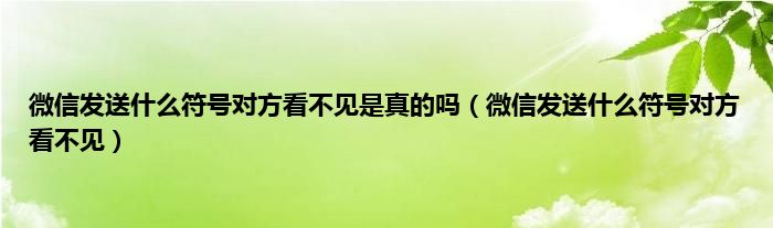 大家好,小常来为大家解答以上问题。微信发送什么符号对方看不见是真的吗,微信发送什么符号对方看不见很多人还不知道,现在让我们一起来看看吧!
