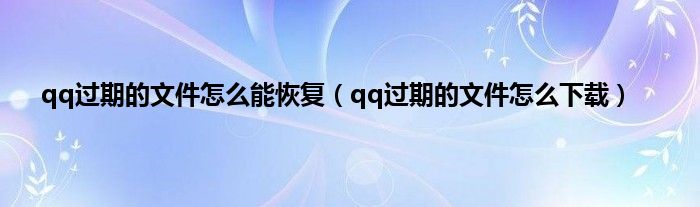 qq过期的文件怎么能恢复(qq过期的文件怎么下载)