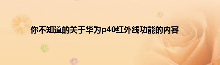 相信通过你不知道的关于华为p40红外线功能的内容这篇文章能帮到你,在和好朋友分享的时候,也欢迎感兴趣小伙伴们一起来探讨。