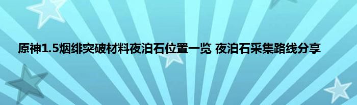 原神1.5正式上线了这次上线带来的很多新内容,其中就有新的角色烟绯,作为一位4星角色,火属性损害的萌妹子,烟绯还是受到不少玩家欢迎的,已经有玩家开始琢磨升级突破了,而烟绯需要突破的材料是夜泊石,夜泊石属于游戏中很稀有的材料,很多玩家不知道哪里能采集,下面就来尾随小编一起来看看吧。
