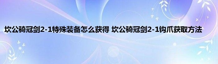 坎公骑冠剑2-1特别装备怎么获得?坎公骑冠剑游戏里的关卡是有不少的隐藏内容的,这其中在2-1关卡就有一个特别的装备钩爪。钩爪还是很实用的,在后期通过一些地形的时候是必备的,这个装备的具体猎取方法可能不少的玩家不清晰,一起来看看吧。