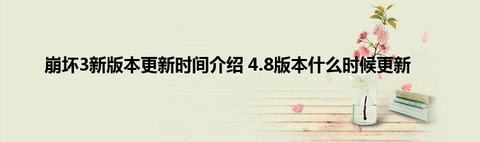 崩坏3全新的版本就好来袭了,那就是4.8这个版本,在这个版本当中讲给玩家们带来一些新的内容,比如说一些新的角色还有一些新的装备等等。很多玩家都对4.8版本的更新比较关注,那下面就让小编给玩家分享一下4.8版本的更新时间,以及4.8版本大概的一个更新内容,希翼能帮到大家。