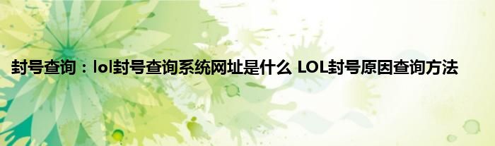 LOL封号查询系统官网入口: