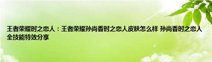 以上就是王者荣耀时之恋人:王者荣耀孙尚香时之恋人皮肤怎么样,孙尚香时之恋人全技能特效分享的推荐,相信通过王者荣耀时之恋人:王者荣耀孙尚香时之恋人皮肤怎么样,孙尚香时之恋人全技能特效分享这篇文章能帮到你,也欢迎对游戏很感兴趣小伙伴们一起来探讨。
