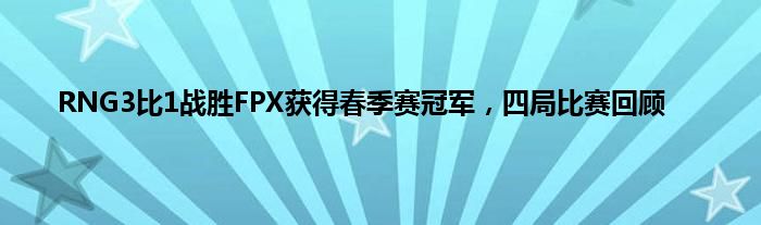 RNG3比1战胜FPX获得春季赛冠军,四局比赛回忆.webp