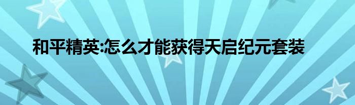 小编今天给各位玩家朋友们带来的是和平精英:怎么才能获得天启纪元套装,有记得的玩家朋友吗?不记得也没有关系,小编已经帮助大家把和平精英:怎么才能获得天启纪元套装找了出来,你只需要动动你的小手就可以轻松知道啦,快来瞧一瞧吧。