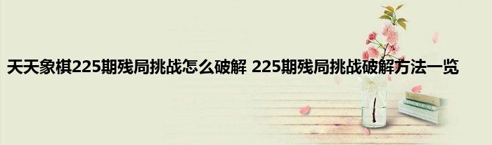 天天象棋残局挑战第225期在今日更新了,很多象棋玩家都等待多时了,据了解现在最少可以用6步过关本期残局,很多玩家们都还在探究的过程中,还不知道怎么通过这一关,那么天天象棋残局挑战225期怎么过?蚕豆小编为您带来天天象棋残局挑战225期破解方法。