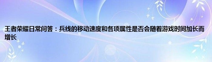 小编今天给各位玩家朋友们带来的是王者荣耀日常问答:兵线的移动速度和各项属性是否会随着游戏时间加长而增长,有记得的玩家朋友吗?不记得也没有关系,小编已经帮助大家把王者荣耀日常问答:兵线的移动速度和各项属性是否会随着游戏时间加长而增长找了出来,你只需要动动你的小手就可以轻松知道啦,快来瞧一瞧吧。