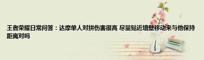 以上就是王者荣耀日常问答:达摩单人对拼伤害很高,尽量贴近墙壁移动来与他保持距离对吗的推荐,相信通过王者荣耀日常问答:达摩单人对拼伤害很高,尽量贴近墙壁移动来与他保持距离对吗这篇文章能帮到你,也欢迎对游戏很感兴趣小伙伴们一起来探讨。