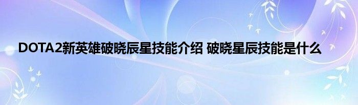 以上就是小编为大家带来的DOTA2新英雄破晓辰星技能天赋介绍,希翼对各位玩家有所帮助。