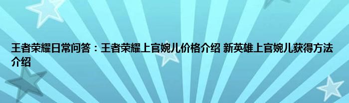 以上就是王者荣耀日常问答:王者荣耀上官婉儿价格介绍,新英雄上官婉儿获得方法介绍的推荐,相信通过王者荣耀日常问答:王者荣耀上官婉儿价格介绍,新英雄上官婉儿获得方法介绍这篇文章能帮到你,也欢迎对游戏很感兴趣小伙伴们一起来探讨。
