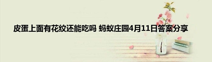 蚂蚁庄园小课堂当中有很多题目都是和大家日常生活息息相关的,玩家在回答问题的同时也能学习到一定的知识,并且还能得到一定的饲料奖励。4月11日的最新问题已经给玩家们更新出来了,问题是皮蛋上面有花纹还能吃吗?不少玩家不知道这道题目的答案是什么,那下面就让小编来给大家带来介绍。