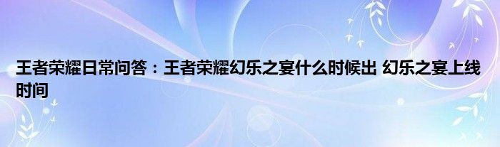 问:王者荣耀幻乐之宴什么时候出?