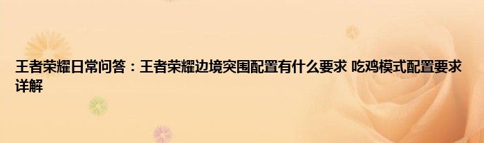 以上就是王者荣耀日常问答:王者荣耀边境突围配置有什么要求,吃鸡模式配置要求详解的推荐,相信通过王者荣耀日常问答:王者荣耀边境突围配置有什么要求,吃鸡模式配置要求详解这篇文章能帮到你,也欢迎对游戏很感兴趣小伙伴们一起来探讨。