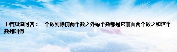 以上就是王者知道问答:一个数列除前两个数之外每个数都是它前面两个数之和这个数列叫做的推荐,相信通过王者知道问答:一个数列除前两个数之外每个数都是它前面两个数之和这个数列叫做这篇文章能帮到你,也欢迎对游戏很感兴趣小伙伴们一起来探讨。