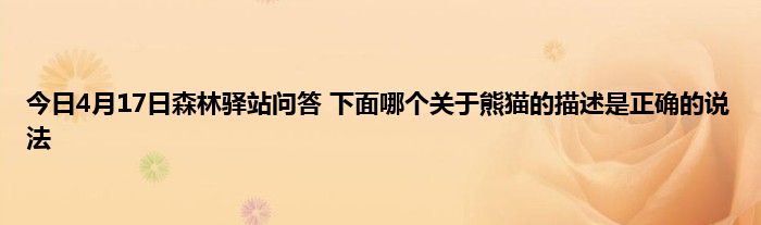 以上就是今日4月17日森林驿站问答 下面哪个关于熊猫的描述是正确的说法的推荐,相信通过今日4月17日森林驿站问答 下面哪个关于熊猫的描述是正确的说法这篇文章能帮到你,也欢迎对游戏很感兴趣小伙伴们一起来探讨。