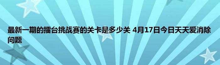 今天来聊聊关于最新一期的擂台挑战赛的关卡是多少关 4月17日今日天天爱消除问题的文章,游戏是很多人的选择,但是游戏玩多了也会身心疲惫,现在就为大家来简单介绍下最新一期的擂台挑战赛的关卡是多少关 4月17日今日天天爱消除问题,希望对各位小伙伴们有所帮助。