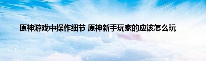小编今天给各位玩家朋友们带来的是原神游戏中操作细节 原神新手玩家的应该怎么玩,有记得的玩家朋友吗?不记得也没有关系,小编已经帮助大家把原神游戏中操作细节 原神新手玩家的应该怎么玩找了出来,你只需要动动你的小手就可以轻松知道啦,快来瞧一瞧吧。