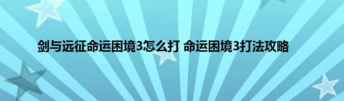 剑与远征命运困境3怎么过关?