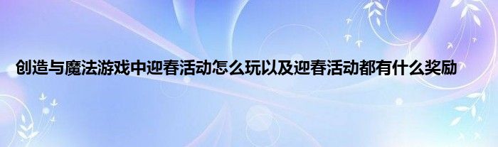 今天来聊聊关于创造与魔法游戏中迎春活动怎么玩以及迎春活动都有什么奖励的文章,游戏是很多人的选择,但是游戏玩多了也会身心疲惫,现在就为大家来简单介绍下创造与魔法游戏中迎春活动怎么玩以及迎春活动都有什么奖励,希望对各位小伙伴们有所帮助。