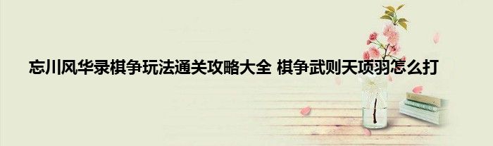 感谢你在百忙之中抽出时间阅读忘川风华录棋争玩法通关攻略大全 棋争武则天项羽怎么打这篇文章。你觉得今天忘川风华录棋争玩法通关攻略大全 棋争武则天项羽怎么打话题怎么样?关于忘川风华录棋争玩法通关攻略大全 棋争武则天项羽怎么打这篇文章的任何评论都可以告诉我。你的每一个建议都是对小编辑的肯定和鼓励。小编明天会继续给你带来更多的好内容。我希望你不要错过。感谢支持哟!