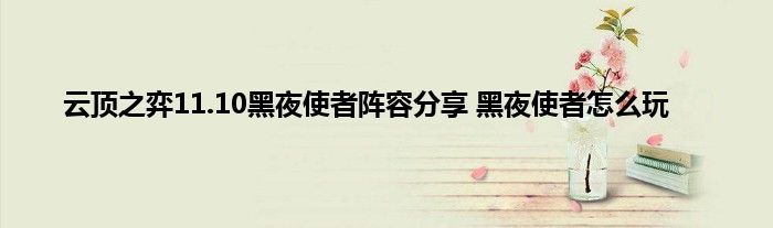 云顶之弈每个版本里面都有一个版本中强力的阵容浮现,在11.10版本里面给玩家们提供了很多阵容来选择,其中有些阵容就得到了加强,那就是黑夜使者阵容,很多玩家不知道在11.10版本里面黑夜使者阵容要怎么来玩,那下面就让小编给玩家们带来这个阵容的攻略介绍,希翼能够帮到大家。