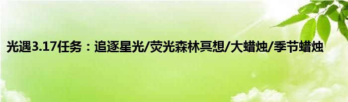 光遇是一款画风优美的游戏,在这个游戏中每日都会有些任务让玩家们去完成,其中今天的任务怎么做?很多玩家都还不知道大蜡烛的位置,不知道去哪里才能收集光芒,下面就让蚕豆君为大家带来,光遇3月17日任务攻略