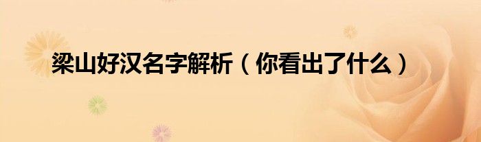 大家好,综合小编来为大家讲解下。梁山好汉名字解析,你看出了什么这个很多人还不知道,现在让我们一起来看看吧!
