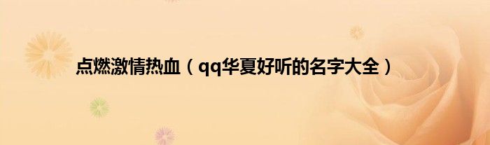 本文点燃激情热血,qq华夏好听的名字大全到此分享完毕,希望对大家有所帮助。