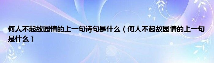 大家好,小科来为大家解答以上问题。何人不起故园情的上一句诗句是什么,何人不起故园情的上一句是什么很多人还不知道,现在让我们一起来看看吧!